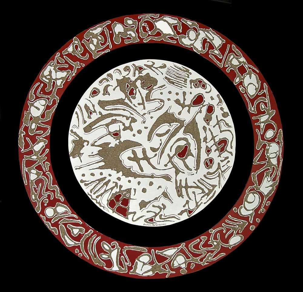 “Non loin de cette plage, en petite Camargue, Evelyne Beaudoing écrit aussi ses histoires à sa manière. De toiles en toiles, à coup de graphismes virevoltants, coule le sable qu’elle utilise, maîtrisant des signes, des symboles, des figures géométriques, des caractères d’où naissent parfois comme interrogateurs, des visages. Cette écriture picturale, particulière, singulière et personnelle pousse son auteur à poursuivre inlassablement sa quête du devenir de l’art.”