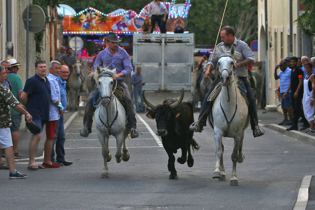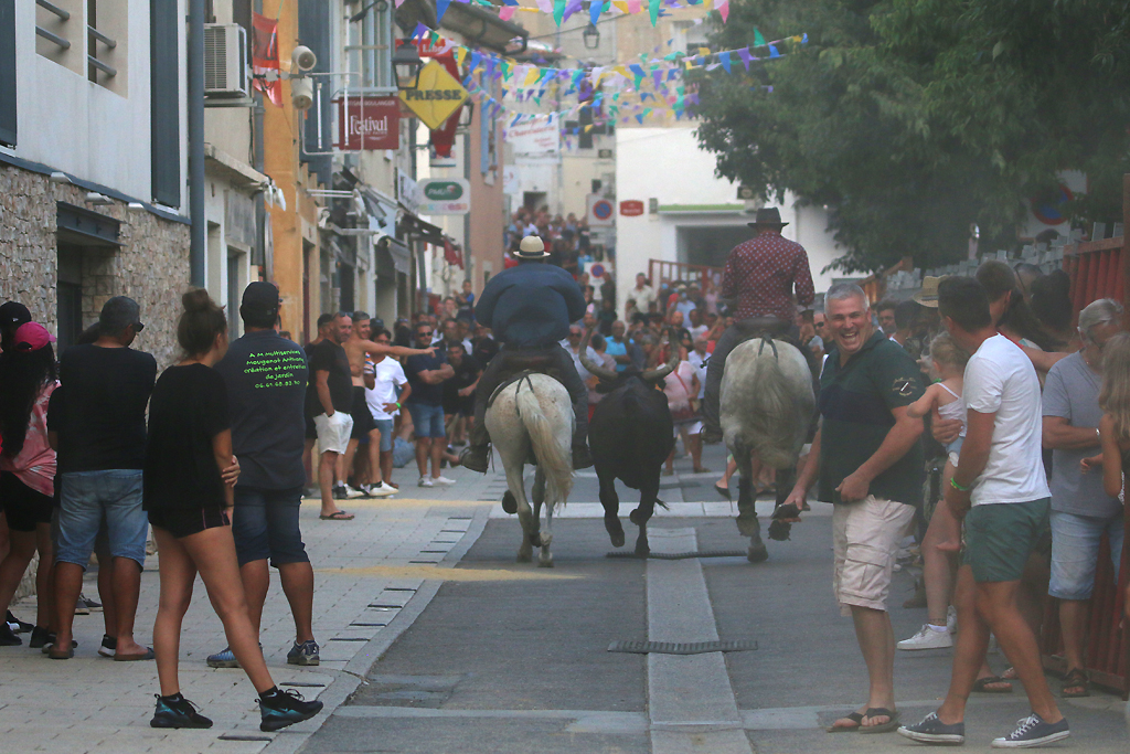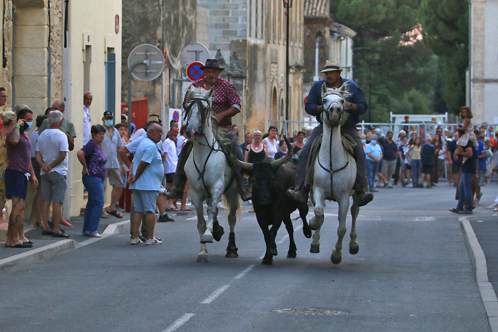 Samedi 14 août la traditionnelle abrivado, sur l’avenue des Costières a ouvert les festivités avec un beau succès populaire. Dans l’après-midi le Club Taurin l’Abrivado présentait, aux arènes Jean Brunel, le 37eme Trophée Christian Mestre et 10eme souvenir Nicole Cartelade Dumatras, course comptant pour le trophée de l’avenir. Durant toute la journée la jeunesse a distribuée ses aubades.